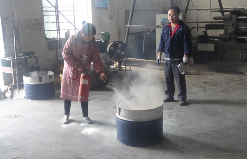 4月22日下午,槍扣車間主任王小峰組織車間全體員工學習關于如何防火的知識.王主任找了一塊空地在一個鐵桶里面點燃了一些廢棄報紙等東西,要求車間員工一一用滅火器進行演練,從如何拔出滅火器上的保險銷以及如何用正確的姿勢去撲滅明火都講解得十分到位。
