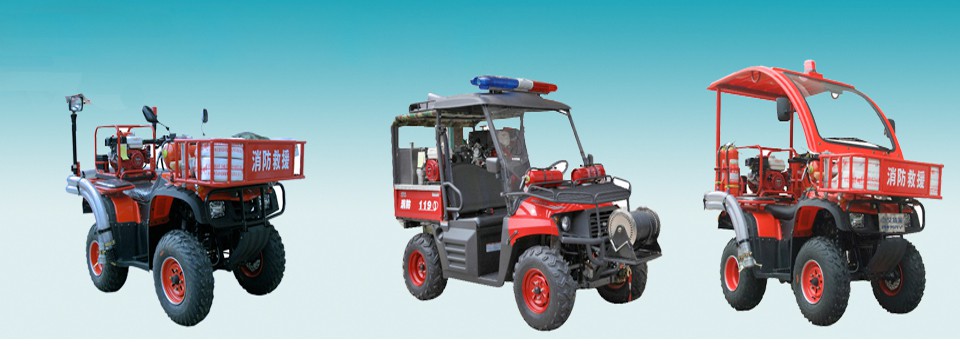 左置方向盤,能夠搭乘3人出警救援,水冷四沖程發動機,CVT無極變速,4×4電控四輪驅動任意轉換,較為崎嶇濕滑路面可以使用電控差速鎖功能,電動絞盤。全地形消防摩托車有超強的越野性能,無論是在崎嶇的山路還是在狹窄的街道,只要能讓車身進出的空間就能快速、靈活地進行滅火救援。