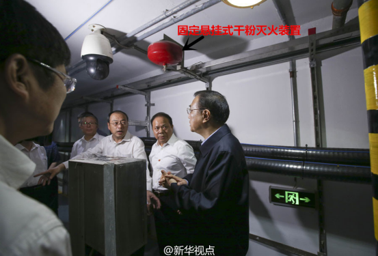 圖4 國務(wù)院總理李克強視察裝有超細(xì)干粉滅火系統(tǒng)的地下管廊