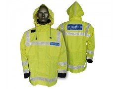 前后均有反光條和警察字樣標識,適合各類警種使用,方便在夜間使用,增強了安全性。前胸處設計有口袋,方便放置對講機等,有天線串口。