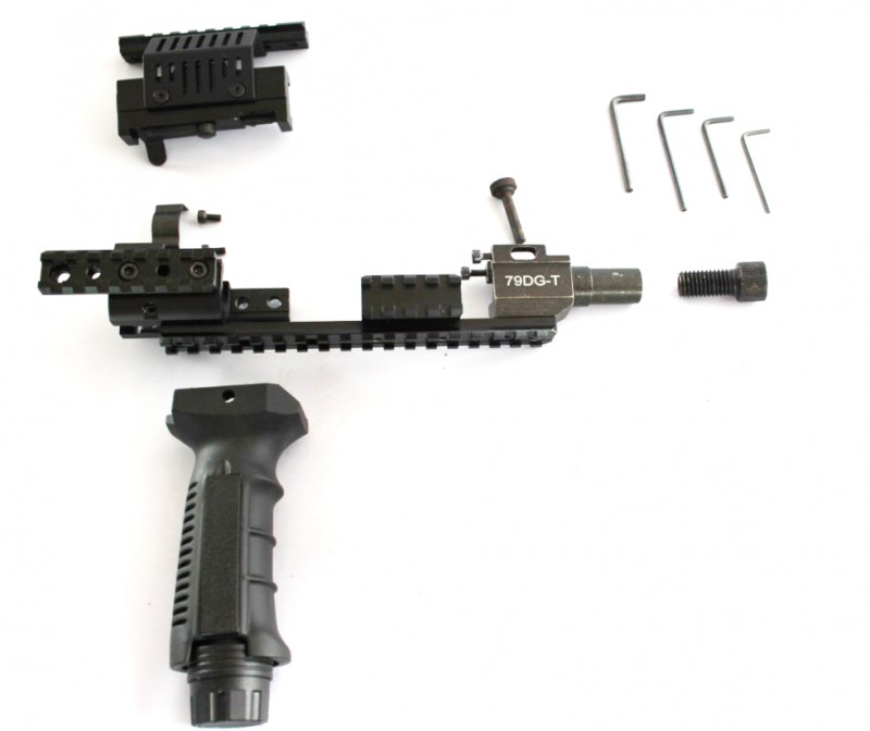 79式戰術導軌系統,是為提高79式槍械在近距離戰斗中的戰術性能而設計的。本品能根據79式槍型的結構和性能特點與79式有機的結合到一起,性能穩定,保障了各精度射擊戰術組件的工作穩定性,解決了79式槍型雖在設計上體現了近距離作戰的優勢,卻無法裝備能大幅提高近戰戰術的光電組件問題。更重要的是,本系統不僅解決了使79式自由搭載各種戰術瞄具的問題,更是實現了使各種搭載瞄具射擊精度在不受拆解影響的前提下,能夠順利完成對槍械的擦拭保養。