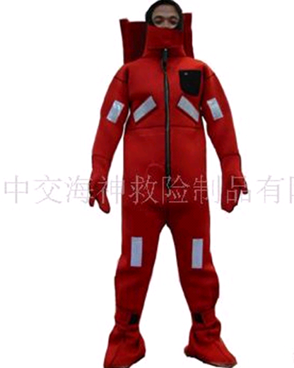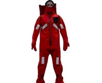 DBF-II型保溫救生服是按照SOLAS公約、IMO規(guī)范要求設(shè)計(jì)生產(chǎn)的,供船舶及海上作業(yè)平臺(tái)上的作業(yè)人員在寒冷水域、惡劣環(huán)境中進(jìn)行救生、保溫的專用服裝。它由防水面料和保溫浮力材料制造,將衣褲、手套、耐油靴連成一體,遮蓋除臉部以外的整個(gè)身體,具有浮力、水密和自然保溫功能,配有救生衣燈和救生哨笛,不需加穿救生衣,是各航區(qū)航行船舶和海上平臺(tái)必備的個(gè)人救生器材。該服裝有大、中兩個(gè)規(guī)格,可分別供身高1.75—1.9米和1.75米以下的人員使用。服裝配有安全吊帶。