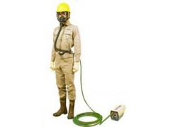 HM-12長管呼吸器面罩(SV-1)視野寬、帶著舒適,與面部有雙層接觸,能保持高度的氣密性。腰帶上裝有風量調節閥,使用者可自己調節風量。電動送風機內裝有高性能機械過濾器,即使在有粉塵存在的場所,亦可使用。1臺電動送風機可同時供4人使用。裝有5速變速轉換擋位,可根據管長和使用人數變換擋位,來調整送風量??諝庖绯龇绞皆O計,即使1人使用,也不會燒電機。