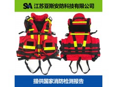 5、有快速解脫救援腰帶,環繞胸部設置一條多功能腰帶,前胸是設置PFD自救裝置,后背部設有牽引繩連接拉環,拉環拉繩破斷力1200kg。