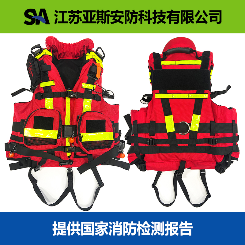 9、前后面縫制1m的3M反光條,下擺部帶有連接點,用于連接腿帶固定帶,以防水流水浪將救生衣沖脫。