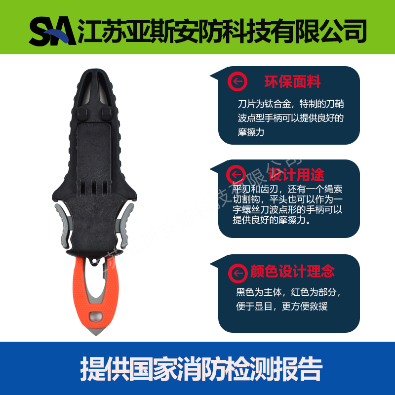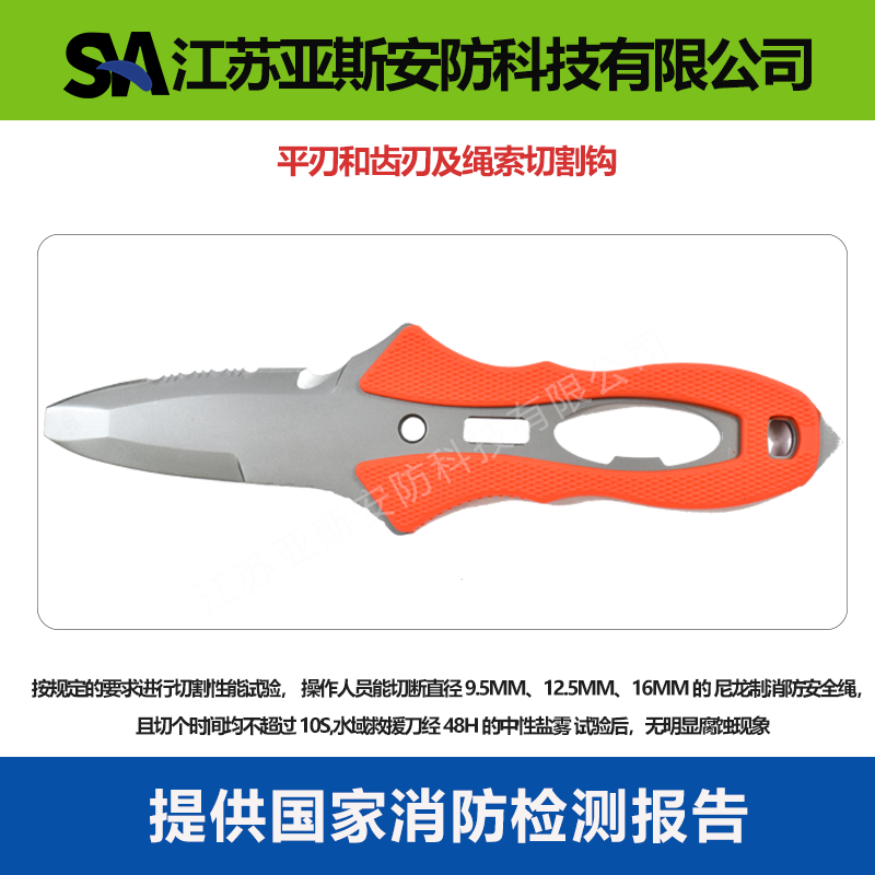 10.耐腐蝕性能:水域救援刀經 48h 的中性鹽霧 試驗后,無明顯腐蝕現象。