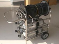車載式移動供氣源的應(yīng)用領(lǐng)域:密閉狹窄有限空間及缺氧,有毒有害氣體環(huán)境;其組成部分:不銹鋼小推車、碳纖維氣瓶、供氣管、減壓器、供氣閥和全面罩等部件 。4個或2個氣瓶(可選5升、6升、6.8升、9升氣瓶配置)