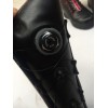 鞋幫采用黑色光滑的防水皮革,皮革厚度為2.2-2.4mm,高幫型,銀白色反光條紋。