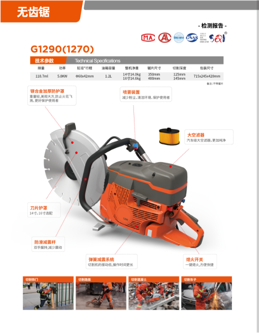 ④噴霧裝置:減少灰塵清潔環(huán)境保護使用者⑤彈簧減震系統(tǒng),熄火開關