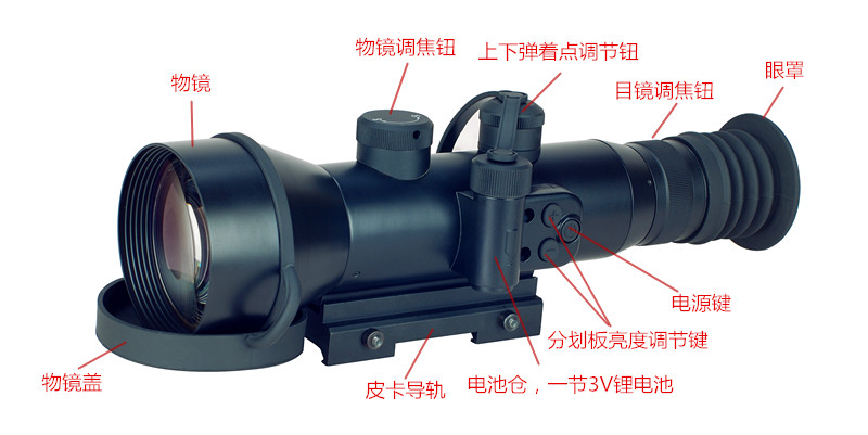 該產品采用了高性能二代加像增強器,從而使觀察清晰度大大提高。只要能滿足微光照度10-3勒克斯(有微光地表光)的使用條件,即可進行夜間野外狙擊作戰(zhàn)。此外,該槍瞄具有自動防強光保護功能,非常適合城市作戰(zhàn)。該槍瞄配有獨立可控的紅外輔助照明器,從而可滿足軍、警作戰(zhàn)的不同使用條件。該槍瞄適用于國際通用標準皮卡汀尼導軌,利用本身自帶連接機構,可分別適用于我國03式,八五式7.62mm,95式和八八式5.8mm狙擊步槍。