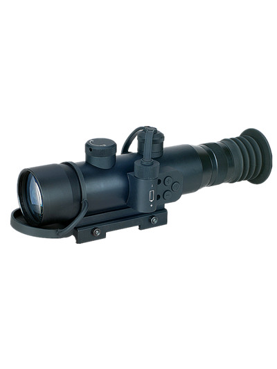 該產品采用了二代加像增強器,從而使觀察清晰度大大提高。只要能滿足微光照度10-3勒克斯(有微光地表光)的使用條件,即可進行夜間野外狙擊作戰。此外,該槍瞄具有自動防強光保護功能,非常適合城市作戰。該槍瞄配有獨立可控的紅外輔助照明器,從而可滿足軍、警作戰的不同使用條件。該槍瞄適用于國際通用標準皮卡汀尼導軌,利用本身自帶連接機構,可分別適用于我國95式,03式,85式和88式5.8mm狙擊步槍。