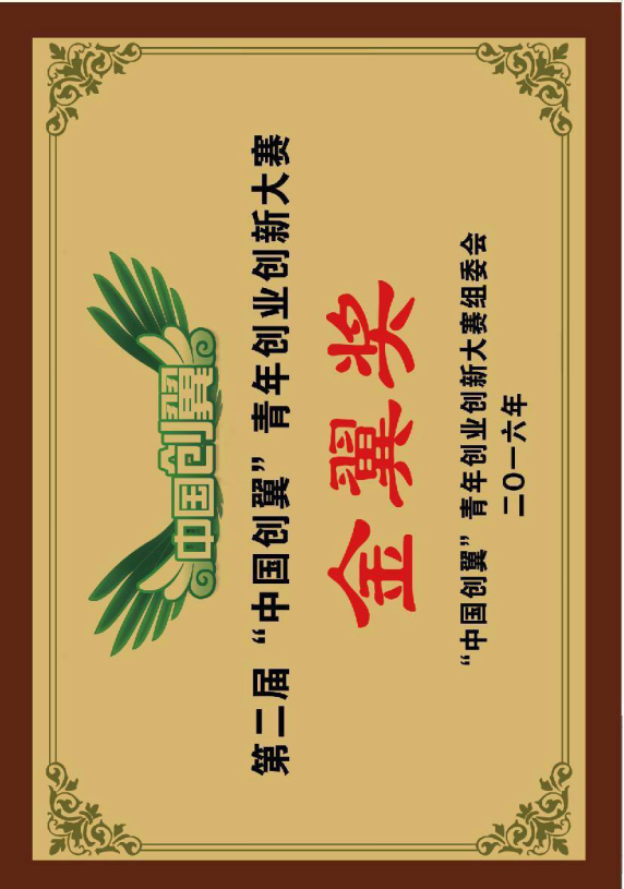 » 2016第二屆中國創翼青年創新大賽金翼獎證書