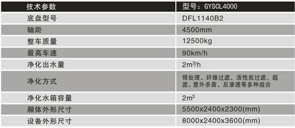 應急救援凈水車GYSCL4000為多功能組合型移動式水處理設備,用于特殊情況下(如自然災害、突發水污染事件等)地表水的凈化處理。該設備具備從多種水源取水制備飲用水的功能,出水能完全達到國家生活飲用水衛生標準(GB5749-2006),并能克服惡劣水源水質的沖擊,凈化效率高,凈化成本低,運行可靠,維護簡單。