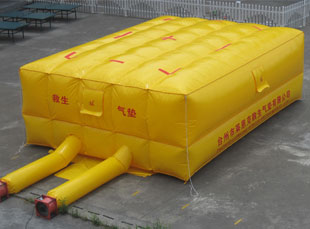 1.救生充氣墊是一種接救從高處下跳人員的充氣軟墊 ,它可減少下跳人員在著地時所受到的沖擊,起到緩沖和保護作用。