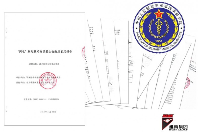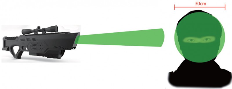 雄鷹集團自主研發生產的“閃電”系列警用激光眩目槍采用世界上效率最高、體積最小的大功率全固態激光器,結合可以自動調節打擊效果的智能控制系統,可以發射直徑20-30公分的高性能激光光束,作用在被打擊目標的雙眼使目標產生10秒-60秒的短暫失明,而不會造成任何永久傷害。