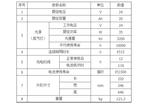 ● 采用特殊氣體放電光源,發光效率高,光通量≥3200LM,是同功率鹵素燈泡的5倍,照度是100W鹵素燈泡的5倍,燈泡壽命達到1萬小時,是普通鹵素燈泡的10倍,連續放電時間大于12小時,在相同亮度指標下,比鹵素燈泡電量消耗節約85%,且發熱量低,更加安全可靠。
