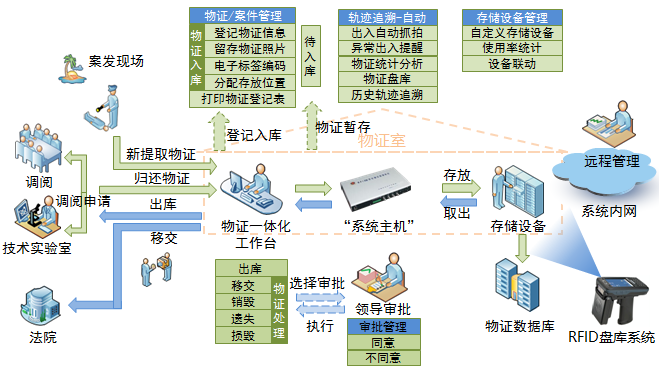 涉案財(cái)物被從涉案財(cái)物保管室調(diào)出及歸還時(shí),監(jiān)控系統(tǒng)能自動(dòng)以非接觸方式對(duì)涉案財(cái)物上的射頻電子標(biāo)簽進(jìn)行掃描并啟動(dòng)網(wǎng)絡(luò)攝像機(jī)抓拍記錄,沒有辦理調(diào)出手續(xù)或取錯(cuò)涉案財(cái)物的情況,系統(tǒng)能通過聲訊報(bào)警進(jìn)行提醒。通過選配的手持盤庫(kù)機(jī),結(jié)合相應(yīng)的盤庫(kù)軟件,幾千上萬件涉案財(cái)物可以在十幾分鐘之內(nèi)完成盤點(diǎn)工作。系統(tǒng)的網(wǎng)絡(luò)化功能,提供了涉案財(cái)物分類統(tǒng)計(jì)分析,為領(lǐng)導(dǎo)和上級(jí)主管部門更好地監(jiān)督和指導(dǎo)涉案財(cái)物管理工作提供了準(zhǔn)確的數(shù)據(jù)和高效的平臺(tái)。