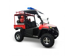 全地形消防摩托車UTV450-2,車身小巧靈活長2.9米、寬1.3米、高2米。一身中國紅外加四個大輪子看起來很氣派。它采用軸轉動傳動方式,速度快、越野性和爬坡性能好,當狹窄地區發生火災或山地需要救援時,它可以快速的抵到事故現場。