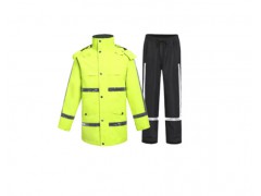 春亞紡濕法涂層復合漂紗防水面料,高品質環保復合型防水膠條,水壓12000MM以上,透氣指數5000,適合南北氣候工作環境使用的布基高亮環保反光材料,脫卸式可調節防雨帽,一體式防水帽領,尼龍魔術貼,透氣式帽眼,收緊式防水內袖,加強型防水外袖,左右臂和肩掛坢設計,包裹式雙門襟防水,高品質全銅四合扣,制式標準輔件,行標制作,國標檢測,整體式防水袋蓋,透氣寬松式反光雨褲