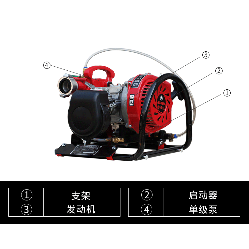 華球SLQ-8-B森林消防泵 是采用日本本田GX690與浙江華球機械制造有限公司生產的單級離心水泵配套制造的。具有結構緊湊、啟動方便、出水迅速、油耗低、重量輕、工作可靠等特點。對于狹路、深巷及消防車輛不能通行場所,更具有獨特靈活機動的優點,是城消防部隊、專職消防隊、森林消防隊、鎮、農村、工礦企業、義務消防隊撲救一般物質火災及小型油類火災的理想設備.