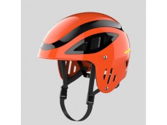 K-LTA型水域頭盔,為了救援人員在水域救援作業中提供一定的頭部保護作用,包括防止碰傷,劃傷和撞擊等;該頭盔采用全盔設計,有效的防護頭部及雙耳,盔殼、內襯緩沖層均采用高性能進口材料制作,具有防護面積大、沖擊吸收性能突出、舒適性好等特點;所有部件均不吸水且重量超輕,頭盔總重量不到550克,長時間佩戴不容易疲勞;特有的孔洞設計使頭盔具有透氣、排水功能,頭盔內部及舒適層均設有導水槽,便于水更快速的從頭頂及兩側流走,該頭盔前面設有一個小帽檐,增加頭盔強度,同時也便于水從兩側流走,避免水流進眼睛里;另外還具有頭圍調節器及帶快速卡扣的下顎調節帶,可適合不同頭型、不同頭圍大小的消防員佩戴。