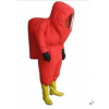 全密封防化服是消防員進入化學危險物品或腐蝕性物品火災或事故現場,以及有毒、有害氣體或事故現場,尋找火源或事故點,搶救遇難人員,進行滅火戰斗和搶險救援時穿著的防護服裝。全密封消防防化服采用經阻燃增處理的錦絲綢布,雙面涂覆阻燃防化面膠,制成遇火只產生炭化,不常人溶滴,又能保持良好強度的膠布作為主材,經貼合-縫制-貼條工藝制成服裝主體和手套,并配以阻燃、防化、耐電壓、抗刺穿靴構成成套服裝。