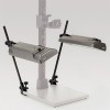 不反光,無光澤的灰色底板。印有細格,厘米,英寸刻度。支腿可調節高度。柱的底座帶有水平儀。柱由光澤的黑色電鍍鋁管制作。上面印有,厘米,英寸刻度。手搖曲柄,齒輪架高度調節裝置,另外通過內置彈簧環調節平衡。鎖定螺絲用來防止高度的改變。RTP相機臂(5524)帶有精確的,通過平行導軌操作的水平調節裝置,約8cm。可逆的1/4 / 3/8安裝螺紋。包括防塵罩。