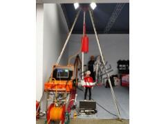 深井救援裝置,可在不同的壞境和不同范圍的深井中實施救援打撈。尤其可在小口徑深井救援中發揮其獨特的功效。能有效地配合公安、消防人員在最短的時間,以最安全的措施成功地實施援救任務。用機械代替施救人員下井施救,主控箱操作全程機械控制,不需要人力。