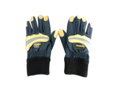 尺寸有M/L/LL,顏色有藏青色跟橘色,材料為酰胺纖維,加工皮厚度0.7mm~0.8mm,續燃時間≤2S,手掌抗穿刺強度≥95N