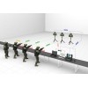 系統(tǒng)簡(jiǎn)介: 1、激光報(bào)靶系統(tǒng)采用以光代彈的原理,集光學(xué)、電子、機(jī)械、通信為一體的新型模擬訓(xùn)練器材。 2、即能基礎(chǔ)瞄準(zhǔn)射擊訓(xùn)練,還能戰(zhàn)術(shù)射擊訓(xùn)練。 (1)基礎(chǔ)瞄準(zhǔn)射擊訓(xùn)練:一槍一靶一終端、一槍打多靶、多槍打一靶、持槍瞄準(zhǔn)穩(wěn)定性訓(xùn)練。 ①一槍一靶一終端 一槍:發(fā)射機(jī)或電動(dòng)教具等發(fā)射設(shè)備。 一靶(光電靶):胸環(huán)靶、小型靶等。 一終端:便攜終端、智能顯示終端、報(bào)靶主控等。 ②一槍打多靶 發(fā)射機(jī)或電動(dòng)教具依次射擊不同光電靶,搭配報(bào)靶主控或智能顯示終端,顯示彈著點(diǎn)信息。 ③多槍打一靶 多個(gè)發(fā)射機(jī)或電動(dòng)教具射擊一個(gè)光電靶,搭配報(bào)靶主控或智能顯示終端,顯示彈著點(diǎn)信息。 ④持槍瞄準(zhǔn)穩(wěn)定性訓(xùn)練 發(fā)射機(jī)或電動(dòng)教具在軌跡模式下,瞄準(zhǔn)光電靶,搭配智能顯示終端,顯示彈著點(diǎn)移動(dòng)軌跡,進(jìn)行持槍穩(wěn)定性訓(xùn)練。 (2)戰(zhàn)術(shù)射擊訓(xùn)練:打著移動(dòng)靶、移動(dòng)著打靶。 ①打著移動(dòng)靶 ②移動(dòng)著打靶 射手在行進(jìn)中射擊,進(jìn)行戰(zhàn)術(shù)背景下的射擊應(yīng)用訓(xùn)練。
