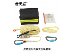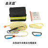 本繩索套裝主要用于消防員自救和逃生,由安全繩、安全鉤、下降器、連接扁帶、阻燃繩包、排繩器等部件組成。