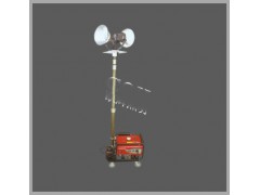 2.燈盤采用伸縮氣缸作為升降調節方式,使用電動氣泵可快速控制伸縮氣缸的升降,最大升起高度為4.5米;上下轉動燈頭可調節光束照射角度,燈光覆蓋半徑達到100-150m。