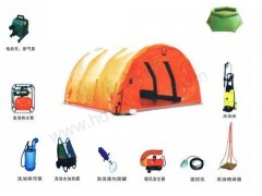 對受到有毒物質污染的人體進行噴淋洗消,也可以做臨日寸會議室、指揮部、緊急救護場所等。帳篷展開面積30m2以上。配有電動充、排氣泵,洗消供水泵,洗消噴槍,移動式高壓洗消泵(含噴槍),密閉式公眾洗消帳篷,洗消廢水回收袋等設備