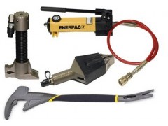 便攜防盜門破拆工具組主要用于卷簾門、金屬防盜門的破拆作業。包括液壓泵、開門器、小型擴張器、撬棍等工具。其中開門器最大升限為380mm,最大挺舉力為60kN