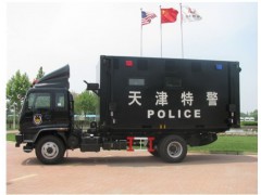 此款餐車為自卸式(即廂體與底盤可以相互分離),廂體上裝有四個手調式機械支腿,廂體先被支高后,底盤與車體分離后廂體落下以支腿為支撐,支腿左右兩側寬度不小于500mm。其保障能力可提供150人三天的口糧,主要設備有蒸箱、平底鍋和工作臺、壓力鍋、烹調鍋、野戰鍋灶、冰箱、微波爐及照明器材等,車上配有發電機,主要為蒸箱、冰箱、開水器、微波爐等供電。整車性能良好,操作簡單,方便實用。