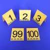 物證牌的形態是用一根線軸連接兩個長方形塑料板材,形成合頁結構,分開兩片可穩定豎立,閉合兩片可方便存放。兩片板材分別印刷1-50號碼,黃底黑字。