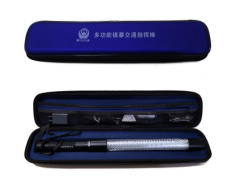 多功能鎮暴交通指揮棒由六角攻擊頭蓋、照明單元、握柄、電池、帶磁吸尾蓋及掛繩組成。握把部分采用航空鋁材,棍體部分采用高強度的材料可抵擋暴力擊打和汽車碾壓,發光管部分采用PC制成,具備紅藍慢閃、紅藍快閃、白光強光及白光弱光四種工作模式,可吸附在汽車上作為應急警示使用,高分貝的報警蜂鳴器可在緊急時刻發出超強警報口哨音,尾部的隱藏式安全錘設計可擊破汽車玻璃。是一款適用于交警、單警理想的新型執勤指揮棒。