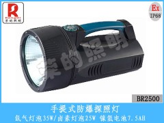 BR2500手提式防爆探照燈適用于油田、冶金、鐵路、刑警、交警夜間事故現場勘查、公安、保安人員夜間巡邏值班、防汛抗洪、電業搶修、消防救火及其它工作現場提供移動照明
